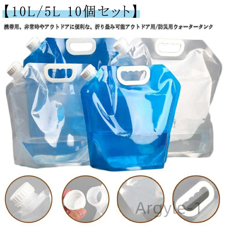 携帯用、非常時やアウトドアに便利な、折り畳み可能アウトドア用/防災用ウォータータンク 【10L/5L 10個セット】使わない場合は折りたたんで収納できるので持ち運びもスムーズに行えます。持ち手が付いているので移動もしやすいです。軽量でたたむとコンパクトなのに大容量の10L。ご家庭の防災セットに一つ常備しておくといざという時に安心です。水を貯めるのにも、注ぐ時にも便利なの広い注ぎロタイプ。ストレスを感じることなく使用できます。マチが広いから、重みで自立が可能です。立てておけるので大変便利です。もちろん、防災用にストックして、残りはアウトドア用にも!バーベキューやキャンプなどのアウトドア・レジャーシーンなど、水タンクがあれば、手を洗いたい時など様々な場面で水が使えるのでとても便利です。災害時の水の確保など非常用給水袋にも使えるのでおすすめです。 サイズ 5L 10L サイズについての説明 サイ... |