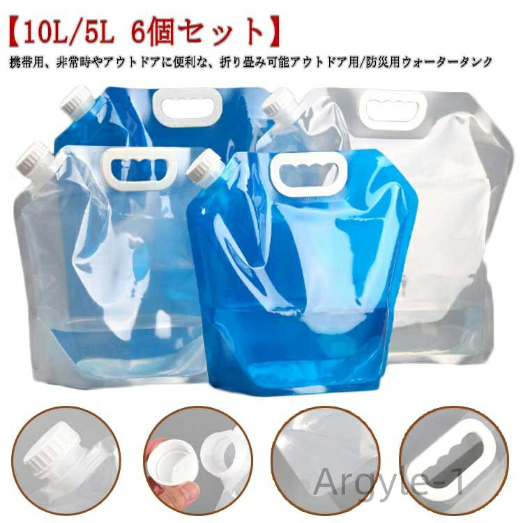 携帯用、非常時やアウトドアに便利な、折り畳み可能アウトドア用/防災用ウォータータンク 【10L/5L 6個セット】使わない場合は折りたたんで収納できるので持ち運びもスムーズに行えます。持ち手が付いているので移動もしやすいです。軽量でたたむとコンパクトなのに大容量の10L。ご家庭の防災セットに一つ常備しておくといざという時に安心です。水を貯めるのにも、注ぐ時にも便利なの広い注ぎロタイプ。ストレスを感じることなく使用できます。マチが広いから、重みで自立が可能です。立てておけるので大変便利です。もちろん、防災用にストックして、残りはアウトドア用にも!バーベキューやキャンプなどのアウトドア・レジャーシーンなど、水タンクがあれば、手を洗いたい時など様々な場面で水が使えるのでとても便利です。災害時の水の確保など非常用給水袋にも使えるのでおすすめです。 サイズ 5L 10L サイズについての説明 サイズ... |