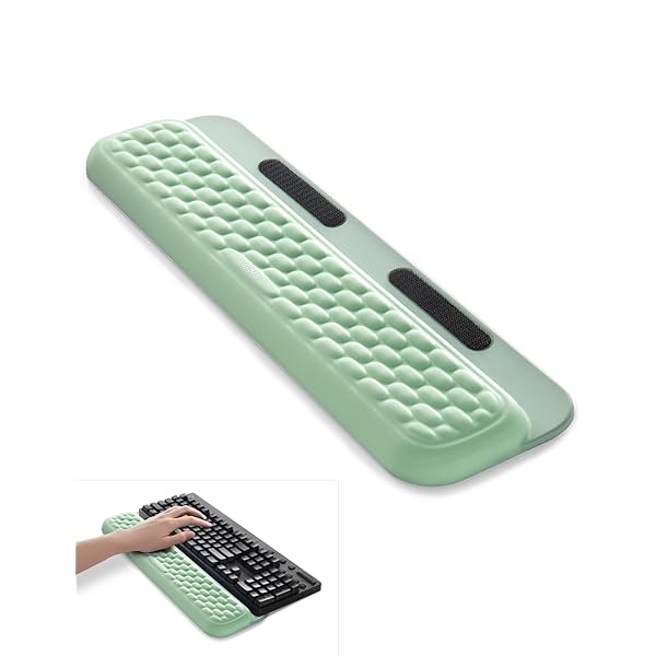 Wrist Rest リストレスト マジックテープ付き キーボード 手首置き 低反発 パームレスト クッション 人間工学デザイン コンピュータ/タイピング/オフィス/仕事/家庭/ゲーム用(ミントグリーン)ブランド色ミントグリーンモデル商品説明【商品概要】【ステッカー付き唯一無二のリストレスト】 キーボードリストレストは、絶対的な安定性のために2枚の粘着ステッカーが付いている市場唯一の商品です。ステッカーをキーボードの底面にしっかりと貼り付けることができ、キーボードが動いたり滑り落ちたりするのを防ぎます。もう、ゲームや作業中にキーボードが不意に動くことはありません。【二重に強化された安定性】他のブランドのキーボードリストサポートのほとんどは、使用中に常に滑ります。それに対して、(1)私たちのキーボードリストパッドは特別なステッカーを使ってキーボードが位置を保つようにし、キーボードがパッドから... |