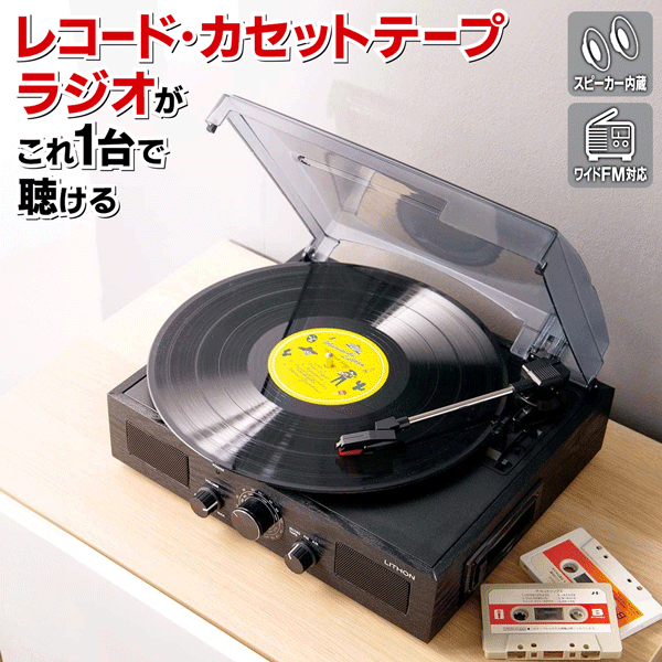 スピーカー搭載 ワイドFM対応多機能レコードプレーヤー コレ1台でレコード・カセットテープ・ラジオが聴ける!スピーカー内蔵だからすぐ聴ける! ■ 1台3役楽しめるマルチプレーヤー レコード・カセットテープ・ラジオがが楽しめます。 インテリアにも馴染みやすい、シックなブラックの木目調デザインです。 ■ レコード 回転速度をレコード盤に合わせて3段階(33・45・78rpm)に切り替え可能。 演奏終了または「トーンアーム」を戻すと自動停止します。 ■ カセットテープ 本体側面からカセットテープを挿入して、再生・早送りができます。 ■ ラジオ 本体正面のダイヤルでAM・FMラジオが聴けます。 ワイドFM(FM補完放送)に対応しています。 ■ ステレオスピーカー内蔵 他のオーディオ機器に接続することなく、 本製品のみでレコードを聴くことができます。 ■ 外部出力 お好みの外部スピーカーに接続して、... |