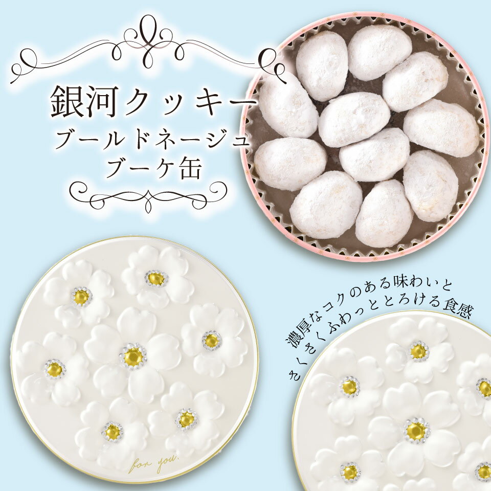 商品情報名称銀河クッキー 原材料名小麦粉(国産)、粉糖、バター(国産)、アーモンド、砂糖、米油、脱脂粉乳(一部に乳成分・小麦・アーモンドを含む)※最終製品には中和叉は除去され検出されませんが、砂糖・こめ油の製造時に必要な加工助剤が使用されております。 内容量11個入 賞味期限発送日から20日以上 商品サイズ直径104mm×高さ37mm 保存方法直射日光を避け、常温で保存してください。 製造者株式会社アトリー 銀河工場 奈良県大和郡山市杉町181-1 送料無料について4缶以上ご購入の場合でも北海道・沖縄・離島・一部地域は別途送料が発生します。 配送について配送業者の指定等、配送条件の指定は承っておりません。予めご了承ください。 その他細心の注意を払っておりますが、クッキーの割れがある場合がございます。予めご了承ください。当店のクッキー4缶以上で送料無料 銀河クッキー ブールドネージュ ブーケ... |