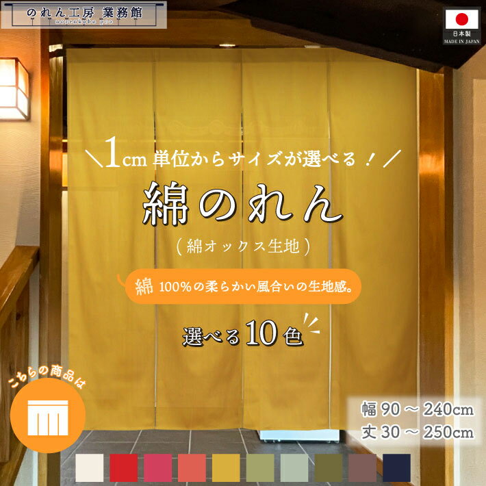 ▼他の「割れ数」はコチラから▼ 商品仕様 サイズ 幅90〜240cm、丈30〜250cm 素材 綿 100% 生産地 群馬県桐生市 詳細 ■平織りを応用した「斜子織り」で作られており、しっかりとしたハリのある生地です。 ■3つ割れ目の入った、4つ割れののれんです。 ■透けにくく、目隠しにも最適です。 (※遮光ではありません) ■直径約3.5cmまでのポール(棒)を通すことができます。 (※つっぱり棒をご使用の場合は、両端のキャップの太さも考慮してください。キャップが取り外せるものもございます。) 注意 ■キャンセル・変更・返品・交換ができませんのでお間違いのないようご注意ください。 ■モニターの発色の具合によって実際のものと色が異なる場合があります。 ■生地の特性や裁断・縫製作業での若干の歪みなどにより、仕上がりサイズに最大2cm程度の誤差が生じることがあります。 こんな使い方ができます ... |