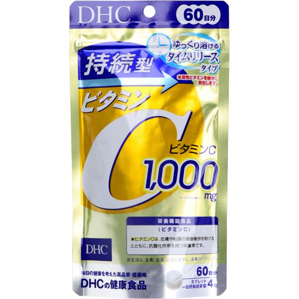 商品情報 商品名 DHC 持続型 ビタミンC 60日分 関連商品 その他国内正規品はこちらへ 商品説明 ●美容や健康に欠かせない栄養素であり、抗酸化作用を持つビタミンC。 ●「持続型ビタミンC」は、そんな消耗しやすいビタミンCを「タイムリリース処方」にしました。 ●体内でゆっくりと溶け出すので、成分が長い時間とどまるのがポイント。 ●1000mg(一日摂取目安量あたり)のビタミンC配合で、キレイと元気を効率よくサポートします。 ●水溶性ビタミン。 【召し上がり方】 ★召し上がり量:1日4粒 一日摂取目安量を守り、水またはぬるま湯で噛まずにそのままお召し上がりください。 【保健機能食品表示】 ・ビタミンCは、皮膚や粘膜の健康維持を助けるとともに、抗酸化作用をもつ栄養素です。 【基準値に占める割合】 栄養素等表示基準値(18歳以上、基準熱量2200kcal)に占める割合:ビタミンC1000% ... |