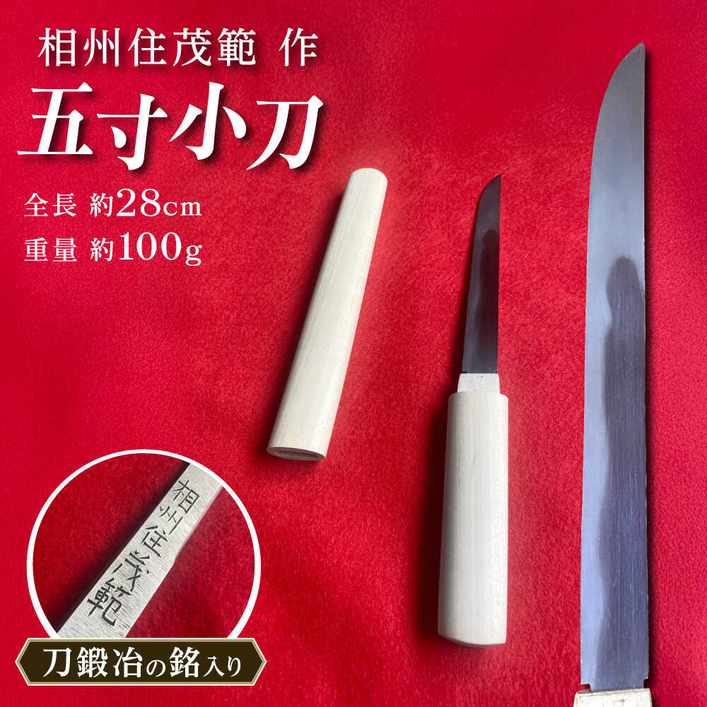 刀鍛冶の魂が込められた、美しき小刀をあなたの手に。 相州伝の技法を継承する刀鍛冶・茂範によって一振りずつ鍛えられた、在銘(銘入り)の五寸小刀です。 製法は日本刀と同様の古式鍛錬に則り、地鉄(じがね)、刃文(はもん)、姿に至るまで、 まさに〃掌に収まる日本刀〃とも呼べる芸術品。 刃文の美しい波紋や、鍛え肌の模様は一つとして同じものがなく、観賞用としての価値も非常に高い逸品です。 刃には製作した刀鍛冶「茂範」の銘が刻まれており、唯一無二の存在感を放ちます。 研ぎ澄まされた切れ味と光沢ある仕上がりが魅力です。 ペーパーナイフとしての実用性はもちろん、その優美な姿は、書斎やリビングに飾るだけで空間を格上げします。 所有する喜びを満たし、見るたびに心惹かれる、そんな魅力に溢れた一本です。 【用途例】 ・和室や玄関に飾って楽しむ観賞用として ・趣味のコレクション・工芸愛好家への贈り物に ・紙を切るペー... |