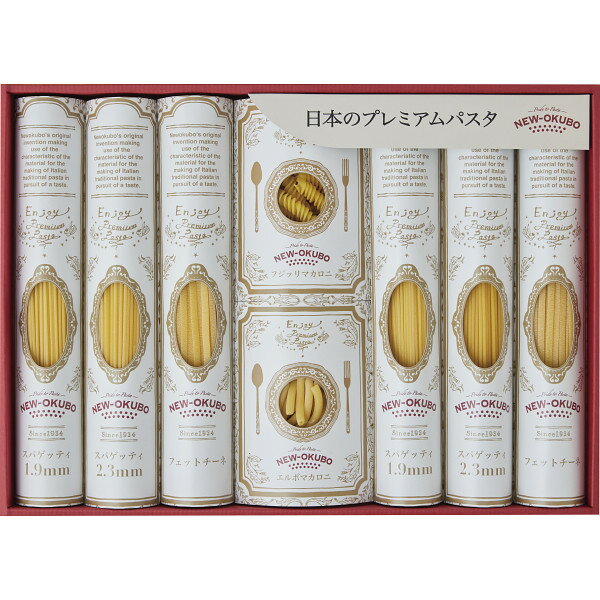 |商品詳細 90年以上こだわりのパスタを作り続けるニューオークボ。イタリアの伝統製法と日本の技が融合した五感で楽しめるパスタをお届けいたします。「低温長時間乾燥」プレミアムクラフトパスタギフトセット●セット内容:スパゲティ(1.9mm)300g・スパゲティ(2.3mm)300g・フェットチーネ300g×各2、エルボマカロニ100g・フジッリマカロニ100g×各1●商品サイズ:(約)45×32×6cm●箱重量:(約)2.5kg●賞味期限:(約)1095日間●アレルゲン(特定原材料8品目):小麦 |ギフト・配送サービス |ラッピング お好きな包装紙をお選びいただけます。 (※メーカー直送商品や形状が特殊な商品等、一部非対応商品がございます。) |のし・掛け紙 ご希望により無料にてのし・掛け紙を承ります。 ご注文時は必ずご使用目的・表書き・名入れのご指定をお願いいたします。 |手提げ袋 お届け先... |