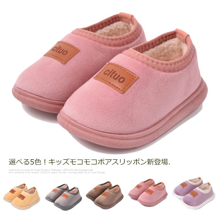 選べる5色!キッズモコモコボアスリッポン新登場.紐がないので、履いたり脱いだりするのが楽々♪ソールは丈夫なPVC素材を使用し、滑りにくいので安心♪合わせるアイテムを選ばないデザインは、毎日履いてもらうのにぴったり♪ふわっふわのボリューム感で、防寒しながらも秋冬のコーデをかわいく見せてくれます♪ラクチンなフラットなので、履き心地バツグン。 サイズ13cm 14cm 15cm 16cm 17cm 18cmサイズについての説明※採寸方法の違いで、1-3cmの誤差が出る場合がございます。素材本体:ポリエステル100% ソール:TPR色イエロー パープル グレー ブラウン ピンク備考注意★洗濯時、色落ちがございます。他の物とのお洗濯もお控えくださいませ。湿気を含んだ状態や水を含んだまま放置しないでください。この製品は洗濯で若干縮むことがあります。洗濯機は使用できません。※ベージュ×モカのみ使用糸の関... |