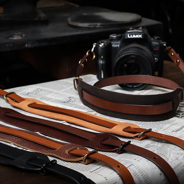 レザー 革 革製品 ギフト 贈答 一眼レフ おしゃれ かわいい 紐 レザークラフト 名入れ プレゼント扱いやすい、しなやかな革を使った肩当て カメラの重さを軽減する幅が広い肩当ては、しなやかな革を使っているので扱いやすく、手に巻き付けてカメラを固定することができます。コンパクトデジカメから一眼レフまで幅広くお使いいただけるストラップです。 使用イメージ 日本国内で加工された植物性タンニン鞣しの革、真鍮の金属パーツを使用しています。味わい深く表情が変わるのを楽しめる素材です。使うほどに愛着が湧くカメラストラップです。 全6色からお選びいただけます お客様の声 ずっと皮で硬すぎず柔らかすぎずのストラップを探していて、レビューを拝見して、こちらの商品を購入させて頂きました。 商品は、想像通りの物で大満足です。 カメラ好きの妻の誕生日プレゼントとして購入しました。昨日、プレゼントしたところとても喜... |