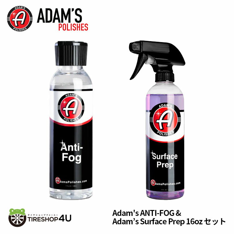 55001030046 Adam's ANTI-FOG 内容量 : 4オンス | 118ml ガラス、ミラー、レンズ、ゴーグル、バイザー、プラスチックに 使用可能な洗浄と結露防止及び曇り止め処理が出来る商品となっております。 曇りの原因であるガラス上の水分のビーズ(球体)化を防ぐ超親水性効果を生み出し、処理された表面の曇りを防止します。 【注意】 コーティング車両への使用はしないようにして下さい。 また眼鏡等への施工は行わないようにしてください。 施工面は曇りませんが水分は付着します。その場合タオルで拭き上げて頂いて問題ございません。 【施工方法】 1.『必ず』Surface Prep 16oz等を使用して脱脂して下さい。 脱脂を行わずに施行すると曇り止めとしての効果が得られません。 またGlass Cleanerは、疎水性添加剤が組み込まれているため使用しないようにしてください。 2.良... |