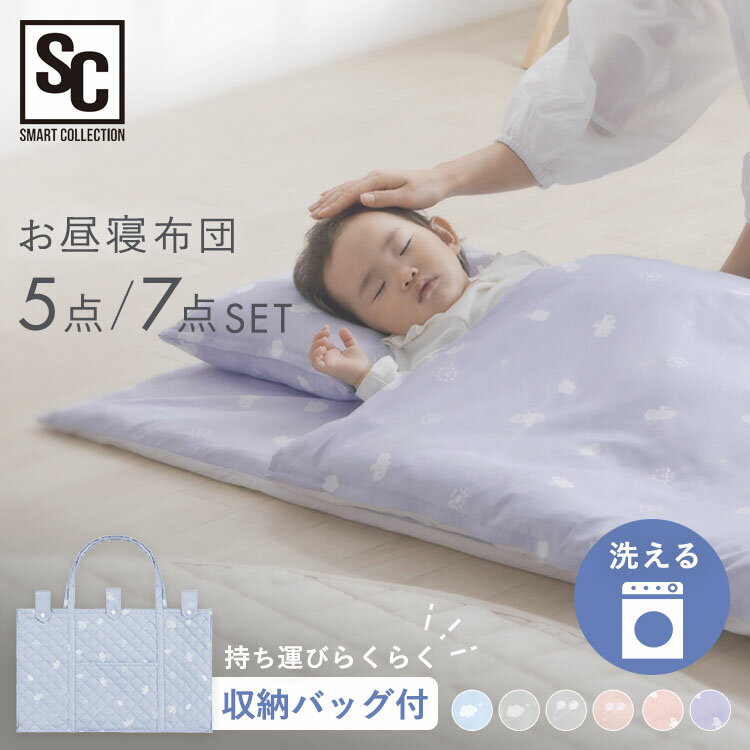 2025年2月5日商品ページリニューアルしました 7点セットが追加されました。掛け布団・敷き布団・掛け布団カバー・敷き布団カバー・枕・枕カバーに収納バッグが付いた、お昼寝布団セットです。 (枕&枕カバーは7点セットのみ)肌に直接触れるカバー類は綿100%素材で、吸水性・通気性に優れています。ふとん・カバーは全てご家庭で洗濯が可能です。収納バックは撥水加工済なので、雨の日に持ち運ぶ時でも安心。 【5点セット】 ●セット内容掛布団、掛布団カバー、敷布団、敷布団カバー、収納バッグ ●商品サイズ(cm)掛布団:幅約79×奥行約119掛布団カバー:幅約80×奥行約120敷布団:幅約67×奥行約120敷布団カバー:幅約70×奥行約122収納バッグ:幅約70×奥行約42×高さ約18 ●商品重量合計約2.1kg ●材質掛布団・敷布団:ポリエステル100%カバー類:綿100%収納バッグ:ポリエステル100%... |