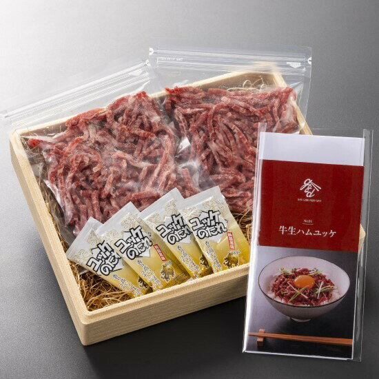 生ハムユッケとは「非加熱食肉製品(生ハム)」で生食用ユッケに負けない「生の風味と食感」を損なわない製法で作られています。 気軽に家庭でユッケを食べることができないかと熟考とテストを重ね、非加熱食肉製品(生ハム)でユッケを再現することに成功しました。 検査証明書と原料の産地証明書もお付けして出荷いたします。 黒毛和牛のもも肉を使用して、適度なサシが入った細切りタイプの生ハムユッケです。 内容量:黒毛和牛生ハム細切り300g(100g×3)、ユッケダレ120g(20g×6) 賞味期限:製造日より179日(ラベルに記載) 保存方法:-18℃以下で保存 ※生ハムは冷蔵庫内で解凍し、解凍後は必ず当日中にお召し上がりください。 ※本製品は、生食用です。子供、高齢者、抵抗力の弱い方は生食をお控えください。 【期日指定不可... |