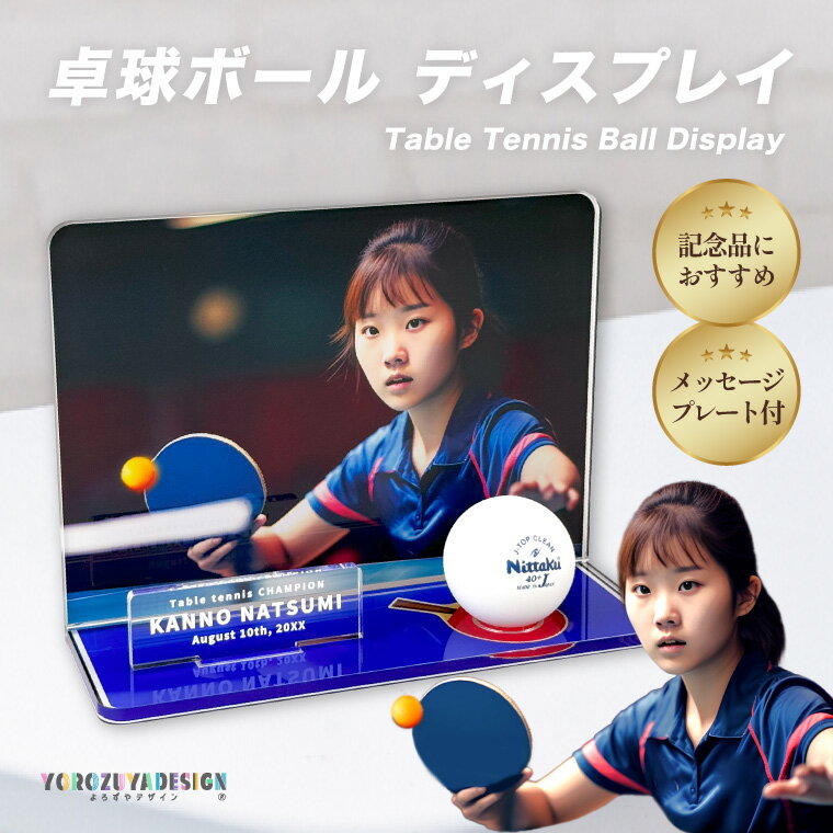 お気に入りの写真と文字でつくるオリジナル卓球ボールディスプレイ!厚みのある国産アクリルを使用し、きらめく輝きと圧倒的な高画質プリントが特徴です。お気に入りのお写真は美しいフォトパネルに、お名前や大会名・学校名や日付など記念の情報はミニプレートにダイレクトプリントいたします。初めての卓球デビュー、学校やクラブ活動の大会、仲間と勝利した思い出など思い入れのある記念の卓球ボールをフォトパネルと一緒に飾って楽しめます。卓球台がモチーフの台座に差し込むだけの簡単組み立てなので収納・携帯・移動にも便利!様々なシーンでの記念品や卓球好きの方へのギフトにもぴったりの卓球ボールディスプレイです。フォトパネルに使用する写真のやりとりはメールやLINEに対応しています。スマホで簡単にやりとりするだけで世界にひとつのオリジナル卓球ボールディスプレイが出来上がります。また、お送りいただいたお写真は専属のスタッフがひ... |