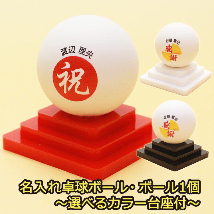 商品詳細 商品内容 ニッタク ジャパントップクリーントレ球1個ボール固定リング1個 サイズ 直径約40mm 印刷 片面印刷(表面) 素材 プラスチック製 デザイン デザイン集一覧からお好きなデザインをお選び頂けます ラッピング ラッピングして送ります のし・メッセージカード 対応不可 納期 約3〜5営業日名入れ卓球ボール 世界に一つだけの名入れ卓球ボール作ります。 ↓↓ そんなあなたにオススメなのが ↓↓ 1個ずつ好きなデザインで名入れができる! 練習用で使うもよし、保存用としてお家に飾るもよし! 卓球仲間同士でお揃いのボールを持てば、 団結力が深まること間違いなし! 世界に一つのマイボールが卓球人生をより楽しいものにしてくれます。 お世話になった人へ、 切磋琢磨する卓球仲間へ、 大会や同窓会などの記念品に。 1つずつラッピングをしているので、 すぐに渡すことができます。 お家に飾れるリン... |