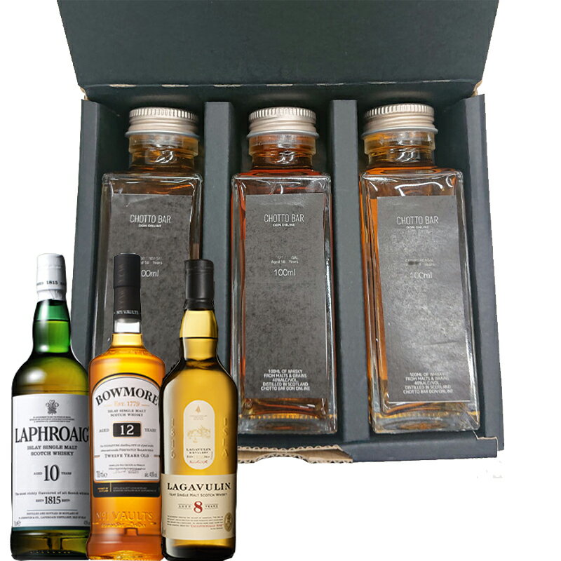 スモーキー大好き!スモーキーでピーティーなセットA プレゼントにもおすすめ貰って嬉しい贅沢セットです。 一般的なボトル(700ml〜1000ml)ではちょっと多い時 3種類のウィスキーを、100mlの小瓶に詰め替えてお届けします。 ■商品の内容 ラフロイグ10Y ボウモア12Y ラガウ゛ーリン8Y 100ml小瓶の3本セット。 人気のウィスキーを贅沢にセレクトしています。 バーや居酒屋で供される、ウイスキーの一般的な「一杯分」は30ml。 よくあるサイズのハイボールや水割りも、30mlのウイスキーとソーダと氷でできている、ということ。 なので、100ml小瓶といっても、実はグラス3杯以上分あるんです。 今回はそれが3本なので、グラス10杯分に相当するたっぷりサイズです。 飲みたいときに飲みたい分だけ楽しめるのが良いところ。 キャラクターの異なる3本セットは飲み比べにもぴったり! #自分への... |