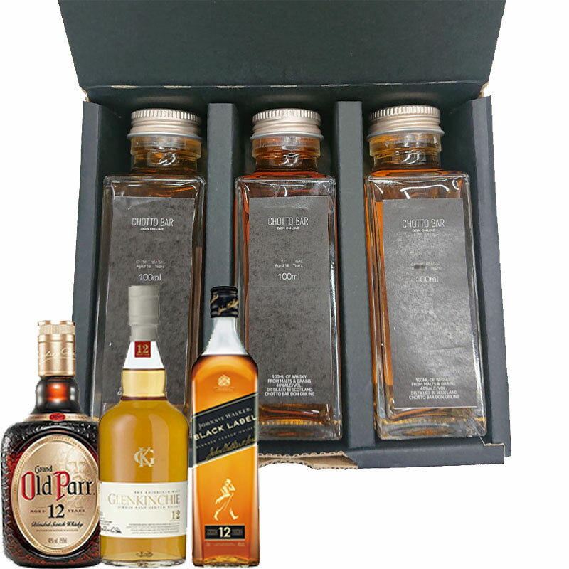 飲み比べギフトセット プレゼントにおすすめ貰って嬉しいウイスキーセットです。 3種類の人気ウイスキーを、100mlの小瓶に詰め替えてお届けします。 ■商品の内容 ・ シーバス・リーガル12年 40度 ・ シーバス・リーガル12年ミズナラ 40度 ・ シーバス・リーガル18年 40度 ギフト用ウイスキー100ml小瓶の3本セット。 人気のウイスキーをセレクトしています。 バーや居酒屋で供される、ウイスキーの一般的な「一杯分」は30ml。 よくあるサイズのハイボールや水割りも、30mlのウイスキーとソーダと氷でできている、ということ。 なので、100ml小瓶といっても、実はグラス3杯以上分あるんです。 今回はそれが3本なので、グラス10杯分に相当するたっぷりサイズです。 飲みたいときに飲みたい分だけ楽しめるのがウイスキーの良いところ。 キャラクターの異なる3本セットは飲み比べにもぴったり! #... |
