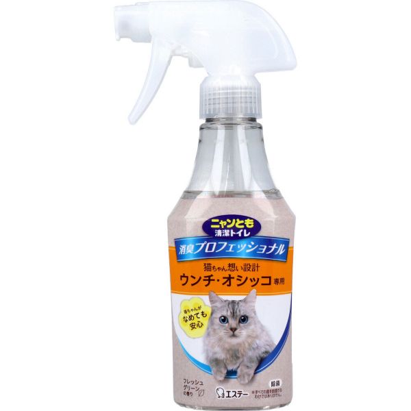 ギフトサービスについてエステー株式会社個装サイズ:93X205X55mm個装重量:約330g内容量:270mLケースサイズ:28.5X22.2X24.3cmケース重量:約5.7kg製造国:日本【発売元:エステー株式会社】【品名】猫用消臭剤【用途】・ウンチやオシッコのニオイが気になるトイレ周りや猫砂の消臭。・トイレ周りや用品類の除菌・清潔キープに。【成分】発酵乳酸、pH調整剤、消臭剤、界面活性剤(非イオン)、除菌剤、天然樹木抽出水、香料【使用方法】・汚物はあらかじめ取り除き、ニオイが気になる場所から約20cm離してスプレーする。・除菌が目的の場合は、対象物がしっとりぬれる程度にスプレーする。(液体のかかった範囲に効果があります。)・トイレ容器や床などの硬質面にスプレーした場合は、スプレー後にふき取る。※約400回スプレーできます。※つめかえる時は必ず「ニャンとも清潔トイレ 消臭プロフェッシ... |