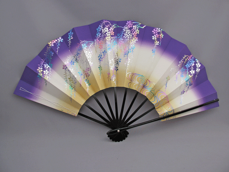 サイズ 9.5寸(約28.5cm)×10本黒塗骨 紫地に金銀小石散らし模様を雲 化粧箱入... |