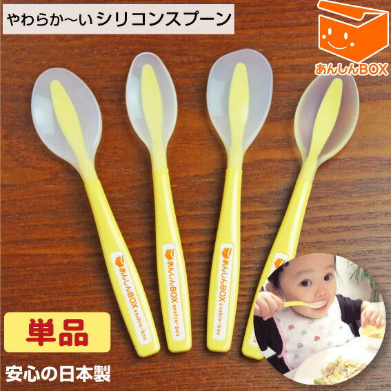 【メール便対応★他商品同梱不可】 やわらか〜いシリコンスプーン【単品】 あんしんBOXオリジナル「やわらか〜いシリコンスプーン」は赤ちゃんの離乳食やキッズのお食事にぴったり★ やさしい口当たりなのでお子様からお年寄りまで、どなたにも喜ばれます。 ヨーグルトやジャムなども最後まできれいにキュッとすくえて、お皿も汚さないので、エコなママや女性たちにも支持されています! 耐熱温度は120℃。食器洗浄機や煮沸消毒も可能で清潔にお使いいただけます。 安心・安全の日本製です。 ※製造ロットによりシリコン部分の色が透明なものと乳白色のものがあり、複数本ご注文いただいた場合混在する場合があります。 予め御了承の上でご注文ください(シリコンの色の違いによる交換はできません)。 ●セット内容● ■「やわらか〜いシリコンスプーン」×1 ※スプーンの色は黄色のみです。スプーンの色を選ばれたい方は「アニマル柄シリコ... |