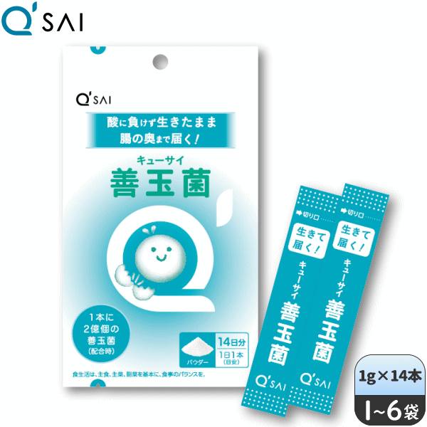 キューサイ善玉菌は、胞子(カラ)に包まれた「有胞子性乳酸菌」です。 ▼商品特長 酸を浴びてもカラが守ってくれるので、生きたまま腸まで到達します。この有胞子性乳酸菌が、1本(1g)あたり2億個(配合時)。水などに溶かして、手軽に善玉菌を補いましょう。あまずっぱいヨーグルト味です。 メーカー希望小売価格はメーカーカタログに基づいて掲載しています 「2袋購入+もう1袋プレゼント」はこちら! (2025/9/1〜2025/11/30まで)商品情報 内容量 1袋あたり1g×14本入り 1日目安量 1本。 お召し上がり方 1日1本を目安に、水などと一緒にお召し上がりください。 賞味期限 商品パッケージをご確認ください。 保存方法 直射日光・高温多湿を避けて保存してください。 原材料名 乳糖、フラクトオリゴ糖、有胞子性乳酸菌末、ミルクカルシウム、ビタミンC 栄養成分:1本(1g)あたり エネルギー/3.... |