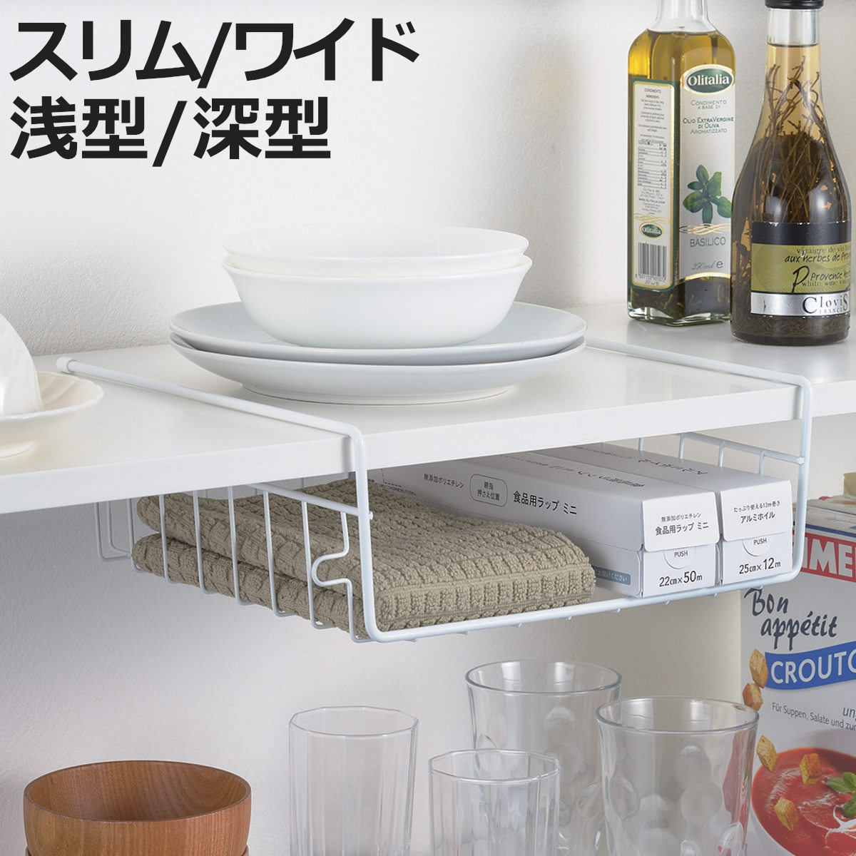 サイズ【スリム・浅型】約 幅16.5×奥行27×高さ11(cm)【スリム・深型】約 幅16.5×奥行27×高さ15(cm)【ワイド・浅型】約 幅29.5×奥行27×高さ11(cm)【ワイド・深型】約 幅29.5×奥行27×高さ15(cm)重量【スリム・浅型】約 262g【スリム・深型】約 290g【ワイド・浅型】約 350g【ワイド・深型】約 385g内容量1個材質本体:鉄(エポキシ樹脂塗装)保護キャップ:塩化ビニル生産国中国製耐荷重【スリム】約3kg【ワイド】約4kg備考※連結2段まで。差し込む部分の幅約35mm区分返品・キャンセル区分(小型商品)ギフトラッピングページを見る●吊り戸棚の下を有効活用できるキッチンバスケットです。●よく使うラップや布巾、調理道具・水筒など、すぐ手の届くところにすっきり収納できます。●ハンガー部分を棚板に引っ掛けるだけで簡単に設置できます。●本体は鉄の丈夫な... |