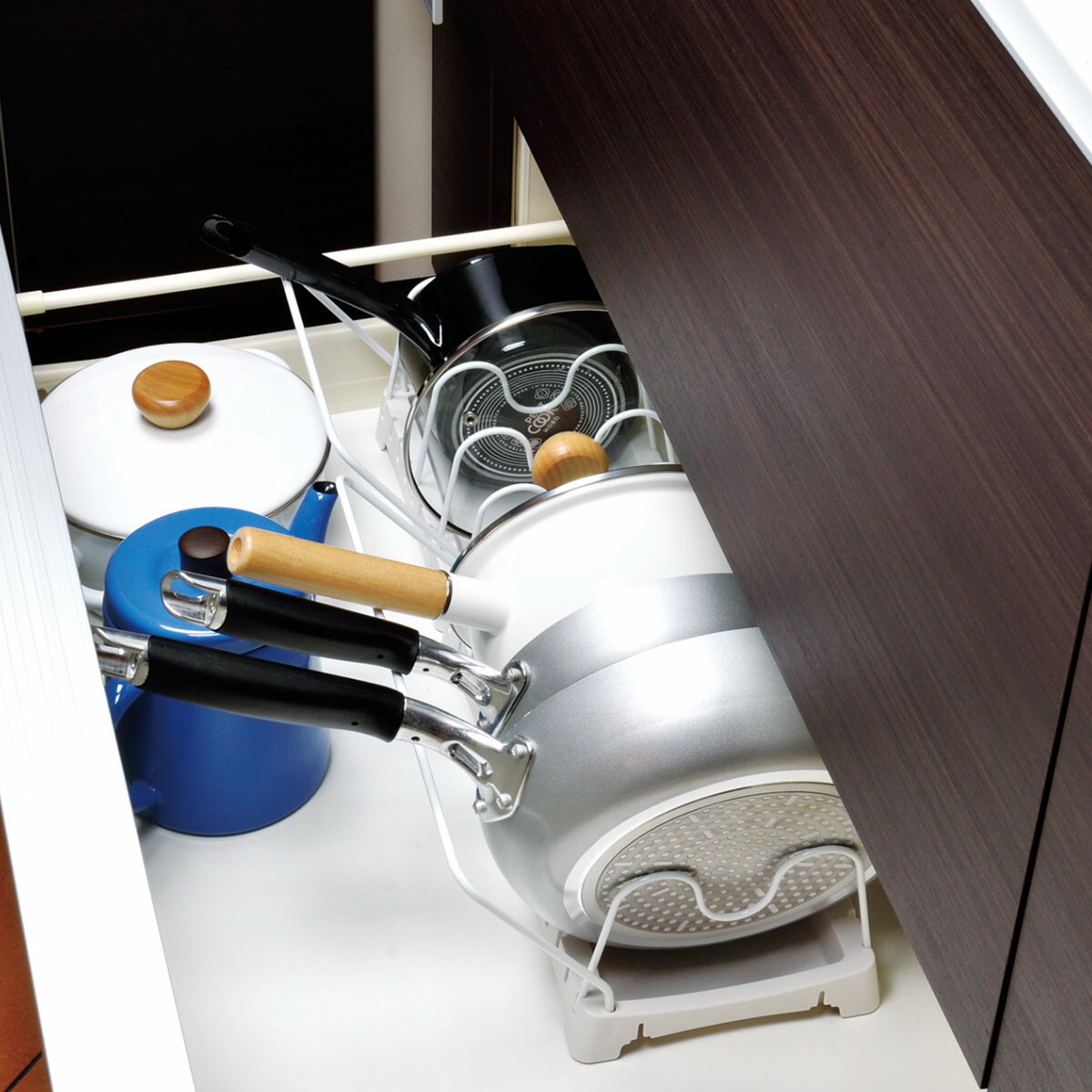 サイズ約 幅30×奥行20×高さ20.5(cm)重量約 0.58kg内容量1個材質本体:鉄(クロムめっき)すべり止め:合成ゴム生産国中国製耐荷重約5kg区分返品・キャンセル区分(小型商品)ギフトラッピングページを見る●キッチンをすっきり収納して快適な空間にする「ストレージセレクトシリーズ」のフライパンラックです。●縦置き・横置きどちらでも使用可能で、シンクの下や、システムキッチンの引き出し収納の中でも使うことができます。●横置きにすると鍋蓋を収納することもできます。●太くて丈夫な鉄のワイヤーなので、重さのあるフライパンでも安心して収納することができます。※耐荷重:約5kgおすすめポイントフライパンを取り出しやすく収納キッチンをすっきり収納して快適な空間にする「ストレージセレクトシリーズ」のフライパンラックです。使いたい時に必要なフライパンをサッと片手で取ることができ、調理もスムーズにできま... |