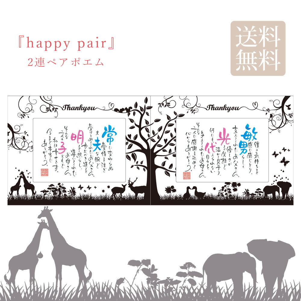 ・通常納品までに2週間ほどかかります。 ・並びの変更をご希望の場合は、ご注文時にお申し付けください。 ・書体、文字色、詩の内容はおまかせとなり、ご指定、事前のご確認はできませんのでご了承下さい。 ・名字、動物、会社名、店名での作成はできません。 ・1回のご注文フォームで 1枚のご注文となります。 ・カタカナのお名前は、ひらがなでの作成となります。ご了承下さい。 ・お名前の文字を漢字の一部して作成する場合もございます。(例)子⇒季・存など。 ・その他の作成にあたっての注意事項は「作成の注意事項」画像・「よくあるお問い合わせ」画像をご覧ください。 ・こちらの商品は受注生産となりますので、ご注文後でのキャンセルはできません。 商品説明 寄り添うペアの動物たち。伸び行く幸せの木が家族をつなげる。想いをお名前にのせた世界に一つだけの贈り物。 ネームインポエムとは、そのフレーズ通り、名前を織り込んで作... |