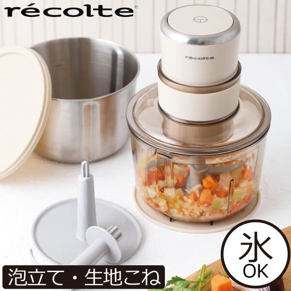 商品詳細 ■商品名 recolte フードプロセッサー コンボ ■サイズ 約幅17cm×奥行き17cm×高さ23.5cm (本体+クリアボウル+ボウルカバー) ■素材 本体:ABS樹脂 ブレード:ステンレス、POM こねパーツ:ポリプロピレン 泡立てパーツ:POM クリアボウル:トライタン ステンレスボウル:ステンレス ボウルカバー:トライタン、シリコン フタ:LDPE すべり止めマット:シリコン ■重量 約1.4kg(本体+クリアボウル+ボウルカバー+ブレード) ■電源:AC 100V 50/60Hz ■消費電力:300W ■定格時間 ブレード:1分 こねパーツ・泡立てパーツ:4分 共通:動作後約30分以上休止 ■コード長:約1.0m ■付属品 本体・ボウルカバー・クリアボウル・ステンレスボウル ブレード・泡立てパーツ・こねパーツ・すべり止めマット フタ・お手入れブラシ・専用レシピブック... |