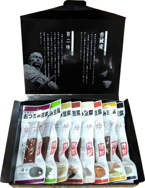 商品詳細 商品名 土佐珍味豆腐 百二珍(ひゃくにちん)4種と豆腐ジャーキー「百三珍」詰め合わせセット (百二珍:醤油、山椒、カレー、ごま 各1本/百三珍:グルテンフリー×2袋)【香蔵庵】【タナカショク】 商品説明 ■百二珍(ひゃくにちん)は「2018年日経優秀製品・サービス賞 優秀賞 日経MJ賞」を受賞! 国産大豆を使用し、燻製専用に製造した豆腐を桜と栗の鬼皮をオリジナルブレンドで燻した香り豊かな商品! 秘伝の醤油ダレに浸け込み、スモークされた豆腐はお酒のお供にピッタリ! 食べやすいスティックタイプとなっておりますので、封を開けてそのままお召し上がりください。 ■特 徴 独自の製法により、豆腐の旨みと栄養価を閉じ込め、豆腐とは思えないほどのしっかりとした食感スティックタイプなので、場所を選ばずお手軽にお召し上がり下さい。 【醤油】 スタンダードな醤油味。[秘伝の醤油ダレ]と、桜と栗の鬼... |