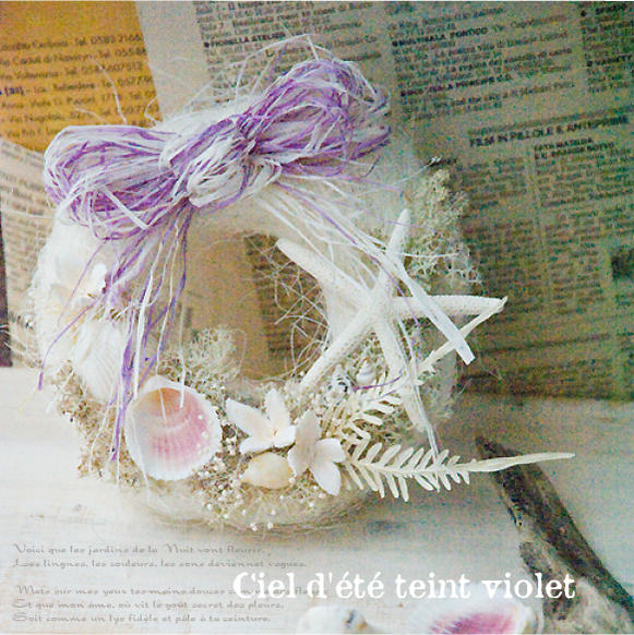 ギフト対応のご案内 写真はラッピング例です。 リースに合わせて台紙を選び、フィルムをかけ、ラッピングいたします。 写真は一例です。 メッセージカードはフリーメッセージを承ります。 20文字3行程度まででお申し付け下さい。 ※カードの柄はご選択頂けません。柔らかなラベンダーカラーのラフィアリボンが優しい 夏のリース。 砂浜で拾った白いヒトデや貝殻をサマーリースに仕立てて飾ろう。白だけのシェルリースよりも少しフェミニンにしたいから、貝殻の内側の可愛らしいピンク色を活かして飾る。 子供の頃、波間で桜貝を見つけた時の様な、小さくはずむ心。白いブナの実は、プルメリアの花の様に優しく可愛く…。 明日は早起きして、浜辺までビーチコーミングに出かけようかな。 エテ ヴィオレ ベースサイズ:直径15cm 完成サイズ:直径16cm程度 リースベースはシサル麻。 白い繊維が夏の爽やかさを演出します 使用材料は ... |