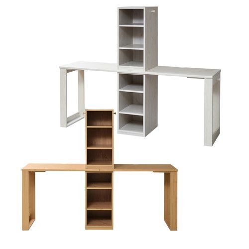 ■商品説明 書棚ラックの組み換えができるシンプルなデスク。仕事はもちろん、趣味などにも使える机。文庫本からA4のファイルまで収納できる棚付き。部屋の雰囲気や自分の好みに合わせてレイアウト。■本体サイズ[外寸] (デスク)幅100×奥行45.5×高さ71.5cm (ラック小)幅45×奥行18.5×高さ69cm (ラック大)幅45×奥行29×高さ69cm■その他サイズ[内寸] (デスク面)幅100×奥行45×高さ71.5cm (デスク下空間)幅52×奥行45×68.5cm (ラック小)幅40.5×奥行16.5×高さ65cm (ラック大)幅40.5×奥行26.5×高さ65cm (可動棚小)幅40.5×奥行16.5×厚み1.8cm(3.2cmピッチ5穴×2段 ) (可動棚大)幅40.5×奥行26.5×厚み1.8cm(3.2cmピッチ5穴 )■材質[天板]合成樹脂化粧合板(塩ビ) [本体]プリント紙... |