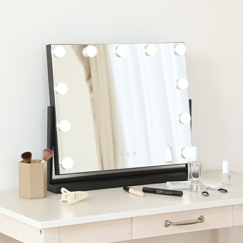 商品詳細 おしゃれが楽しくなる高輝度LEDミラー サイズ(約):幅50×奥行12×高さ45.5cm 重量約:3.64kg 材質: ミラー:ガラス 電球:ポリカーボネート フレーム:スチール / エポキシ樹脂塗装 備考:ACアダプター付属(1.5m)、LED11球 商品説明 ●ビッグサイズのLEDミラー 大きくて見やすく、メイクからヘアスタイリングまでしっかり確認できます。 またデスクと合わせてドレッサー風にも。 ●高輝度のLED電球 11球のLEDでしっかり照らします。 天気や部屋の明るさを気にせずメイクが可能です。 ●タッチスクリーン 触れるだけで簡単に操作できるタッチスクリーンを採用しています。 ●3色に切り替えできる Mのボタンをタッチすると、白色・中間色・電球色でライトの色が変わります。 ●調光機能付き Pのボタンを長押しすると無段階で明るさを調整できます。 ●角度調節可能 ... |