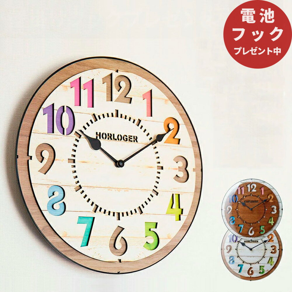 DETAILS 木目調×カラフルフォントの電波時計2種類の木目が楽しめるナチュラルテイスト満点の壁掛け時計はコロンとしたフォントがキュート。 数字の向こうに見えるカラーに遊び心が隠れたデザインです。 丸い平凡なフォルムが、表情豊かな木目を加えることで木工品のようなやさしさを持ちました。 下地となる文字盤の上に、数字の部分をカラーリングしてその上から数字と目盛りを切り抜いた木板をあわせて完成しました。 ナチュラルテイストはもちろん、子供部屋や北欧テイストまでみんなに好かれるウェルカムデザインです。 時間を自動で合わせてくれる電波時計仕様は、贈り物としても最適です。 直径30cmと手頃な大きさはリビングから子供部屋、玄関まで飾る場所を選びません。 構造はとてもシンプル。 時計の針を動かす心臓部(ムーブメント)部分は、単3電池x1で動きます。 ・電波サーチ機能 現在の電波受信状態をランプでお知ら... |