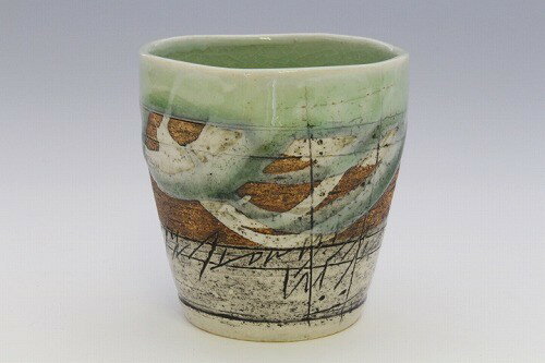 高さ13cmの長めの湯呑み。 細い線文を施し小花を削って描いた、趣のある深めの織部色の湯呑。 彫ってあるので手触りも楽しめる一品です。 お好みのお茶や焼酎杯、ビアカップとしてもお洒落に使えます。 瀬戸赤津焼伝統の匠の技をお楽しみ下さい。 【お誕生日プレゼント お祝いの贈り物に是非お勧めします】 ■サイズ:径7.5cm 高さ13.0cm ■重さ:220g ■窯元:瀬戸市窯元/玉樹窯 三宅命次 ←左の画像をクリックすると拡大します。 ラッピング無料。包装紙(リボン)・熨斗・メッセージ・カード 玉樹窯/三宅紀保作トップページをご覧下さい。★大切な方への贈り物「織部の器」千瓢は真心込めてお届けします。 ★★★織部の器/千瓢・店主お勧めの贈り物/夫婦湯呑み(桐箱入)★★★ 熟練の絵師が描いた草花文の夫婦湯呑。 素朴な土味のろくろ目織部組湯呑。 葡萄絵の鼠志野組湯呑。 黄金色の貴重な組湯呑。 重厚な趣... |