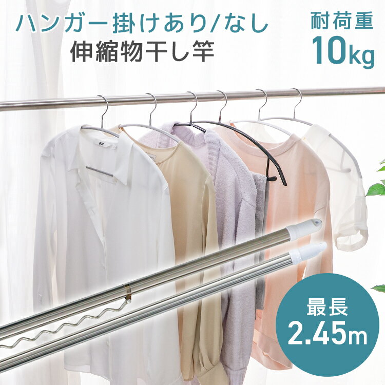 2024年11月20日にリニューアルしました! 物干し竿伸縮最大サイズが2.8mに変更、 アルミ・ステンレスそれぞれ1本・2本セット選べるようになりました。 使い方に合わせて選べる、2種類の物干し竿。 間隔を保って乾きやすい!ハンガー掛け付き物干し竿/シンプルで使いやすい!ストレート物干し竿 ◆ストレート物干し竿 ハンガーやタオルなど、干すものを選ばない、定番の形。 ◆ハンガー掛け付き物干し竿 波型のフックにハンガーを掛ければ間隔を保って干せるので、洗濯物が風で移動せず風通しを確保して乾きやすい! ◆両端伸縮でバランスよく調整 両端がそれぞれ伸縮するから、洗濯物の量に合わせて自由に長さを変えられる。 ◆耐荷重約8kg しっかりした太さのパイプで洗濯物をしっかり支えます。 ◆コンパクトになるジョイント式 悪天候などで家の中にしまいたいときも、分解すれば持ち運びやすいサイズに。 部屋の中でも場... |