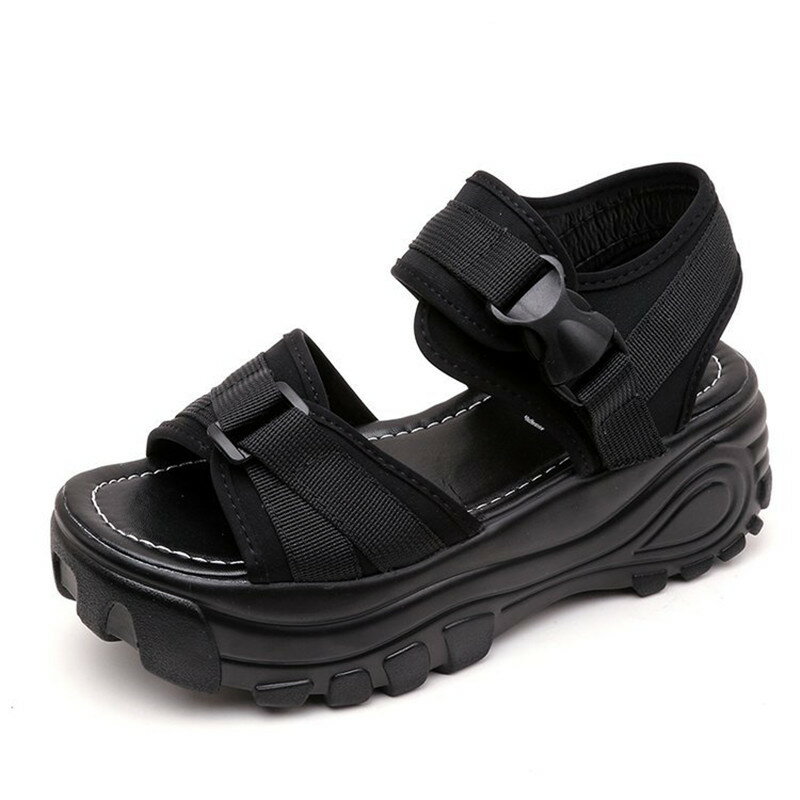 今シーズンも引き続き人気の厚底サンダル!この夏のマストアイテムです。トレンドのコーディネートにも相性抜群。 2重ベルトのデザインで、美脚効果と歩きやすさを両立しました。柔らかいインソールが足に優しくフィットし、長時間歩いても疲れにくい快適な履き心地です。 約7cmの厚底ソールでスタイルアップを叶えながら、歩行時の衝撃を吸収し、足への負担を軽減します。ベルト部分には両面ファスナーを採用。足に合わせて簡単に調節可能です。 靴底には凹凸のある滑り止め加工を施し、安全性にも配慮しました。耐摩耗性にも優れており、長くご愛用いただけます。 「厚底サンダルって可愛いけど、疲れるんじゃ…?」そんな心配はもう不要です! このサンダルは、しっかり厚底なのに驚くほど軽量。「長時間歩いても全然疲れなかった!」という嬉しいお声をたくさんいただい... |