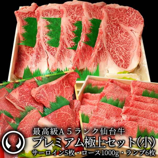 最高級A5ランク仙台牛!プレミアム極上セット(小)。 食べて満足! 仙台牛のプレミアムのセット(小)になります。 和牛の最高峰をお楽しみいただけます。 【セット内容】 ・最高級A5ランク仙台牛 すき焼き・しゃぶしゃぶ用ロース 1,000g ・最高級A5ランク仙台牛 サーロインステーキ 200〜220gx5枚 ・最高級A5ランク仙台牛 ランプステーキ 100〜120gx6枚 最高級A5ランク仙台牛サーロインステーキ は、最高級ステーキに適した部位で一口、口に頬張れば、濃厚で繊細な味わいが食べる人の心に満足感を与えます。 最高級の仙台牛をボリュームタップリの1枚200g以上でお送りいたしますので存分にやわらか、まろやか、ジューシーなプレミアムなステーキをご堪能いただけます。 5枚セットですのでご夫婦とお子様、家族で仙台牛をお召し上がりいただく方にご好評です。 最上級和牛の定番。最高級すき焼き・... |