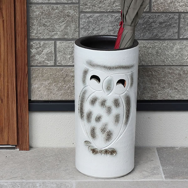 商品説明 品番KT0007 品名白ぼかしふくろう 傘立 素材陶器(信楽焼) サイズ[本体]外径 21.5cm 高さ 45.5cm[投入口]内径 17cm 商品説明 「可愛らしいふくろうを彫刻している、オーソドックスな形の傘立です」◇幸を呼ぶとされるフクロウは苦労知らずで不老長寿、学力向上にご利益があるといわれています。 ◇ご自宅用としてはもちろん、新築祝いや開店祝いなど贈り物にいかがでしょうか。※適度な重さで安定感があります。※裏面底側に水抜き用の穴が開いております。 付属品 「内底面保護用マット」※マットのお色は、時期によって変わります。※マットは傘立の内底に合わせた形になります。 ギフト包装について ◇のし・ギフト包装は、無料にて対応させていただきます。 ※こちらの商品は箱サイズが大きくなるため、包装は「帯包装」となります。ご了承ください。 ※のし・ギフト包装のご利用は、ご注文の際の「... |