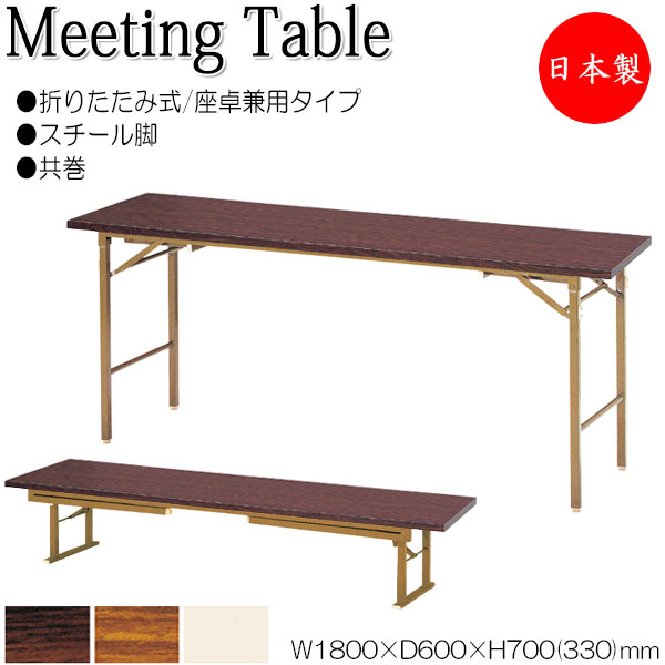 商品の特徴 座卓兼用テーブル、ローテーブル、机 *共巻タイプ 高作業時と低作業時に合わせて高さを2段階に変えることができる折り畳みテーブル。 使わない時は畳んでコンパクトに収納可能です。 テーブル時はレベル調整が可能なアジャスター付。床面とのガタツキに対応します。 座卓時は畳に傷がつきにくい畳ずり付きですので、和室でも使用が可能です。 安心・安全の日本製、組立不要の完成品! グリーン購入法適合品です。 別注でサイズ・カラーオーダーも承ります。詳細はお問合せ下さい。 病院・診療所等の医療施設や福祉施設、学校や学習塾などの教育施設、公共施設、企業や工場、ネイルサロン・エステサロン・ヘアサロンやイベント会場・店舗など業務用にご使用頂いている丈夫で高品質な商品です。 商品仕様 ■サイズ/W1800×D600×H330/700mm ■天板/表面材:メラミン化粧板、エッジ:共巻、28mm厚 ■脚部/ス... |