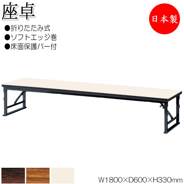 商品の特徴 折り畳みテーブル、座卓、ワークデスク、机 *ソフトエッジ巻タイプ 折りたたみ式なので使わない時は畳んでコンパクトに収納可能です。 脚部は保護バー付なので、畳などを傷つけにくい仕様。 座敷や和室での使用におすすめです。 エッジ部は軟質樹脂を打ち込んだソフトエッジ巻。 コーナーがR仕上げで安全性があります。 安心・安全の日本製、組立不要の完成品! グリーン購入法適合品です。 別注でサイズ・カラーオーダーも承ります。詳細はお問合せ下さい。 病院・診療所等の医療施設や福祉施設、学校や学習塾などの教育施設、公共施設、企業や工場、ネイルサロン・エステサロン・ヘアサロンやイベント会場・店舗など業務用にご使用頂いている丈夫で高品質な商品です。 商品仕様 ■サイズ/W1800×D600×H330mm ■天板/表面材:メラミン化粧板、エッジ:ソフトエッジ巻、28mm厚 ■脚部/スチールパイプ(26... |