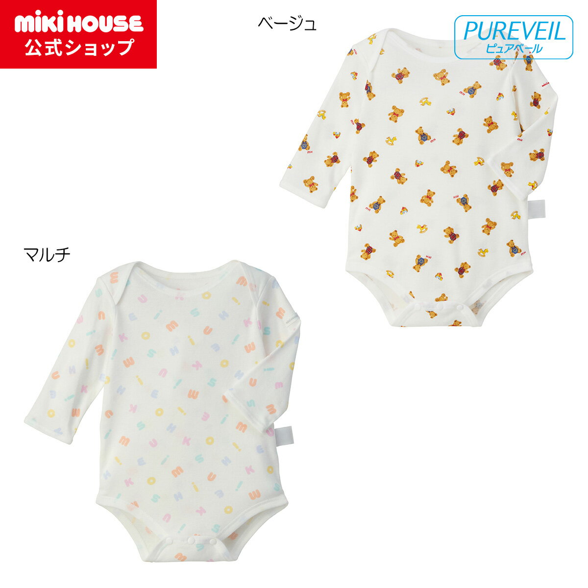 ミキハウス MIKIHOUSE ピュアベール半袖前あきフライスボディシャツ 通年向け 男の子 女の子 一年中いつでも快適に着ていただけるフライス素材の半袖ボディシャツです。 男女問わず着られる人気のベアとパステルロゴのプリント柄です。 インナーとして使えるボディシャツ。短肌着・コンビ肌着を卒業したら便利なのが、ボディシャツです。 ・着せ替えやすい前あきタイプ ・首がすわるまでは、赤ちゃんを寝かせてお着替えができるので『前あき』のタイプが便利 ・股下までホックで開閉 ・股ホックの色を変えて、ホックの付け間違いを防ぎます ・フライスは伸縮性や通気性に優れたやわらかな風合いの定番素材 ・吸水性・耐久性にすぐれた素材 ・安心の日本製 ・抗菌・抗ウイルス加工『ピュアベール』を施した高機能肌着 ※「抗菌・抗ウイルス加工」 口腔内の洗浄・消毒に使われている成分をベースに開発された 安全性の高い固定化抗菌... |