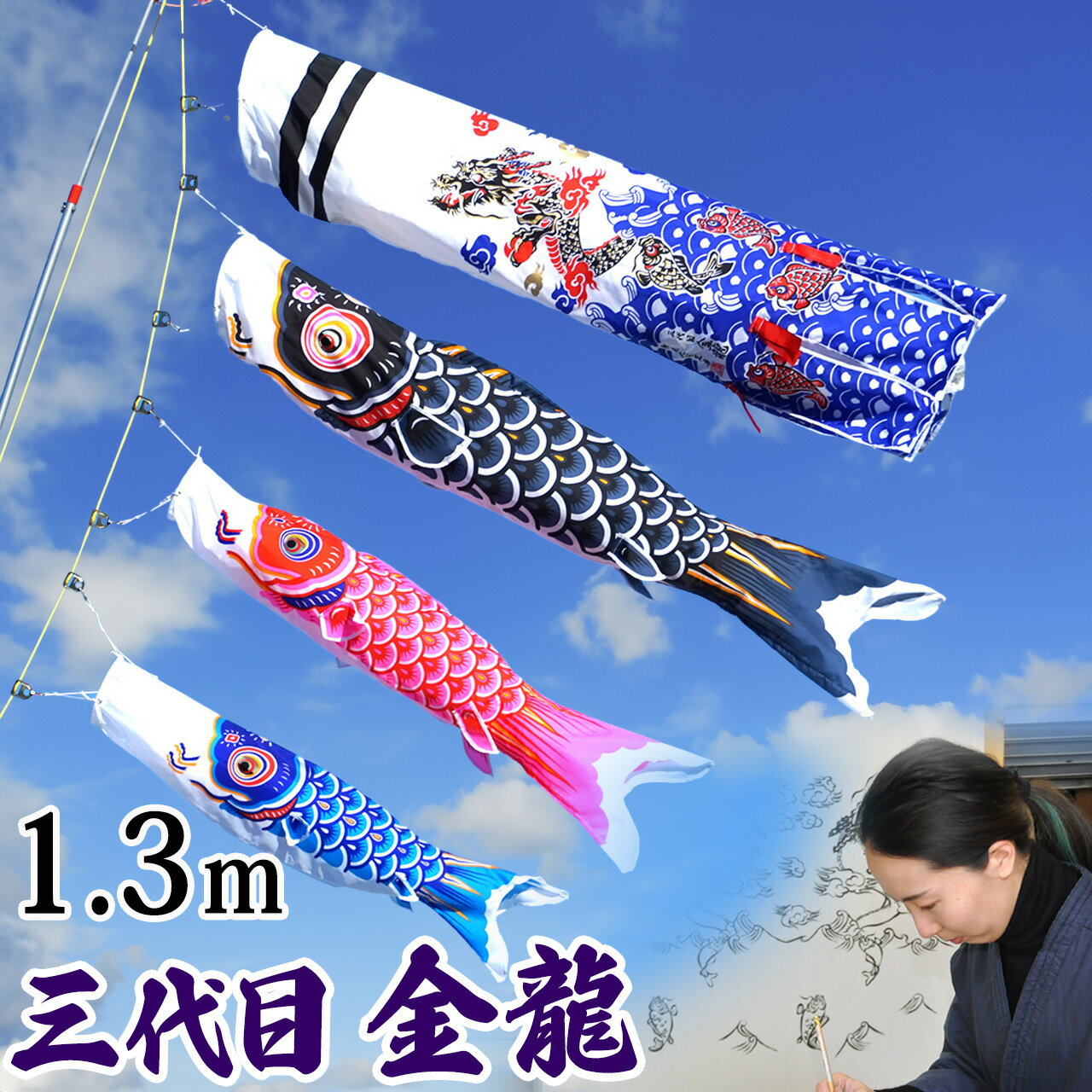 サイズセット内容:[吹流1.3m]・[黒鯉1.2m]・[赤鯉1.0m]・[青鯉0.8m]】ポール1.9m 「A型金具」他、矢車等全ての部品が揃っています※サイズは個体差があります。※吹流しと鯉のぼりは「友禅染め」された捺染加工商品です。※水濡れや退色に強く軽くて泳ぎやすい東レナイロンタフタ製品です。ギフト対応表 [sp_veranda]>商品番号:C6003江戸東京で唯一軒の手描きの出来る鯉のぼり職人『三代目金龍』作鯉のぼり こいのぼり コンパクト ベランダ用 マンション 取付金具 ポール 染無し 名前染め 家紋染め 三代目金龍デザイン 昇龍 1.3m ミニ 新作 秀光 限定品 特選 目玉商品 買得 人気 ランキング C6003 詳細写真 江戸東京で唯一軒の手描きの出来る鯉のぼり職人『三代目金龍』作お名前商品につきましては配送日時のご指定は承れません。ご了承くださいませ。秀光人形工房... |