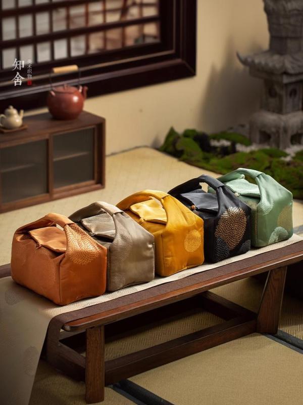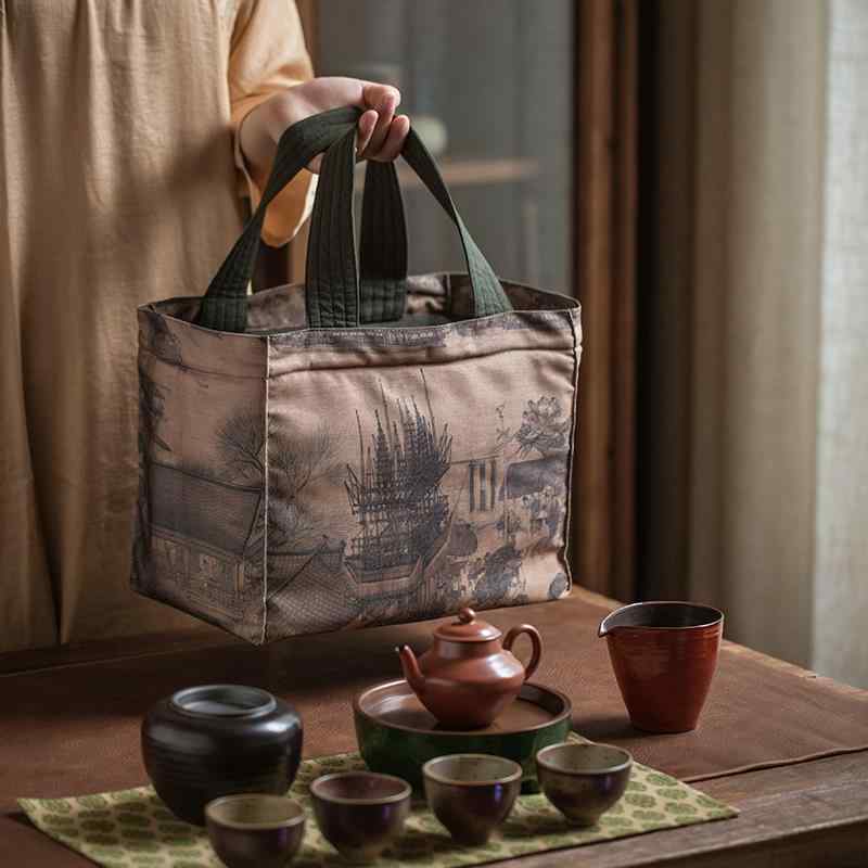 旅行 ティーセット 収納 バッグ ポータブル 布 持ち手 面ファスナー 仕切り 厚手 ポット カップ 大容量 中国茶 茶道 おしゃれ レトロ チャイナ風 鶴 風景 アウトド... |