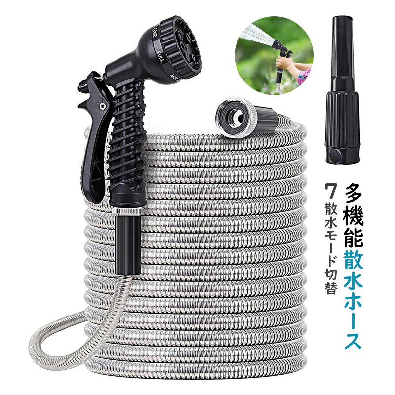 母の日 ギフト 父の日 ギフト 敬老の日 ギフト クリスマス ギフト お正月 子供の日 ギフト バレンタインデー ギフト ホワイトデー ギフト 可愛い おしゃれ オシャレ パーティー 入学祝い ギフト 卒業祝い ギフト 結婚記念日 ギフト お歳暮 ギフト お中元 旧正月 春節 お誕生日 などのプレゼントに ひまつぶし大変申し訳ございませんが のし 包装は対応いたしておりません。 ガーデンステンレスホース 15m ホース ステンレス 散水ノズル 噴射7パターン ステンレスホース■商品詳細軽くて丈夫!そして折れない・絡まない・錆にも強いステンレスホースです。ゴムホースと違い地面を引きずって穴が開いたり、車の洗車時にタイヤの下にホースが入ってもスムースに動いてくれます。ノズルは7種類の噴射パターンを切り替えられるので、園芸の水やりなどにも最適です。サイズ:全長約15m重量:約2.1kg材質:ステ... |