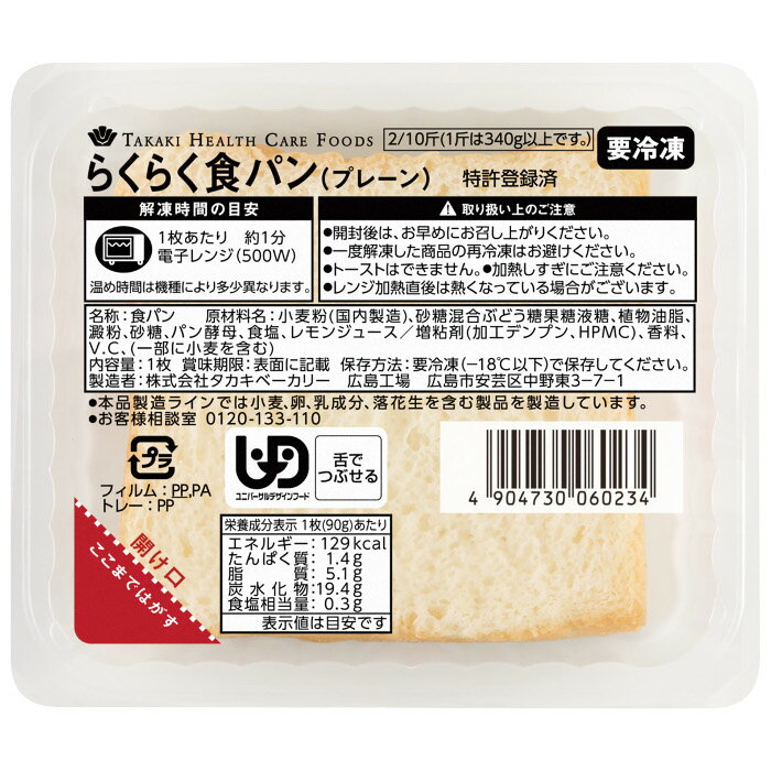 らくらく食パン プレーン 発売累計100万枚を突破! やわらかいパンの介護食。 噛む力が弱くなった方にも楽に召し上がっていただけるミミまでやわらかい「らくらく食パン」のプレーン味。どんな料理にも合わせやすい味です。 お客様の声 ケアマネからのすすめで、お試しに1ヶ月分頼みました。来月100才を迎える祖母がとてもおいしく食べてくれました。毎食、おじやだったのでとても喜んでいます。そして、毎朝ご飯を作る手間も減り、母も私も助かってます。 甘いものが大好きな祖母なので、以前はケーキやクレープ等を好んで食べていました。飲み込みが心配になってきたので最近はなかなか、甘いものを食べさせてあげられませんでした…。今はらくらく食パンでジャムを色々変えたりホイップクリームと一緒に出したりしています。「軟らかか」「うんまか」と喜んでくれます。とても、嬉しいです。 脳梗塞でひどいえんげ障害となった父のためにパン... |