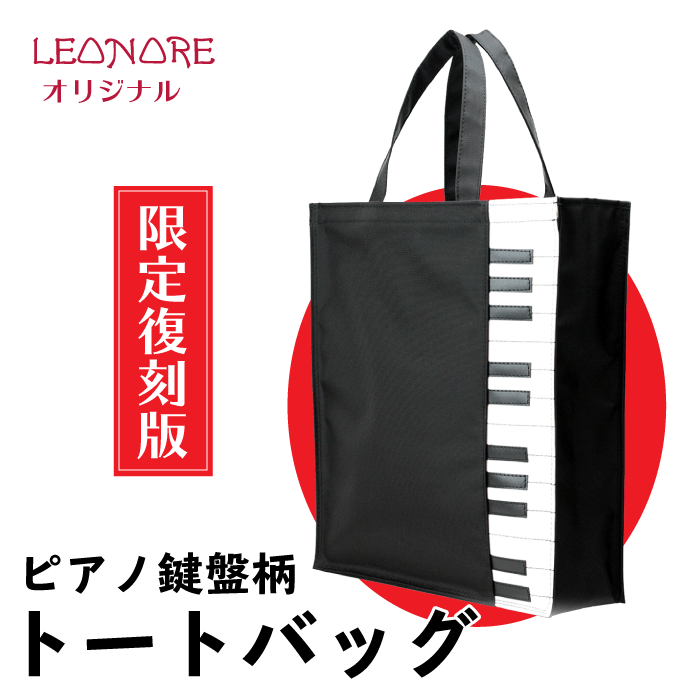 レオノーレオリジナル商品! 週刊誌で取り上げられ、お問い合わせも多く、復刻生産致しました! シンプルな鍵盤デザインだから幅広い年代の方々にご愛用頂いています。 メイドインジャパンならではの丁寧な手仕事♪ 熟練の職人が裁断から縫製まで一つひとつを手作業で製作 プリントではなく立体的に縫い付けて黒鍵と白鍵が美しく表現されています。 A4サイズの教本、楽譜、ノート、ペンケースなどをしっかり収納するマチ幅。 丈夫なナイロン製なので持ち易く雨の日もサッと拭くだけでお手入れ簡単。 内ポケット付きで 携帯電話や定期などさっと取り出せる。 見た目良し、使って良しのロングセラーのトートバッグです。 お稽古初めの記念に親から子へ贈って頂けると嬉しいです。 またご年配の方への贈り物にも喜ばれています。 ●サイズ:H35×W31×D8cm ●材質:ナイロン・PVC・塩化ビニール ●内ポケット付 ●日本製 ●458... |