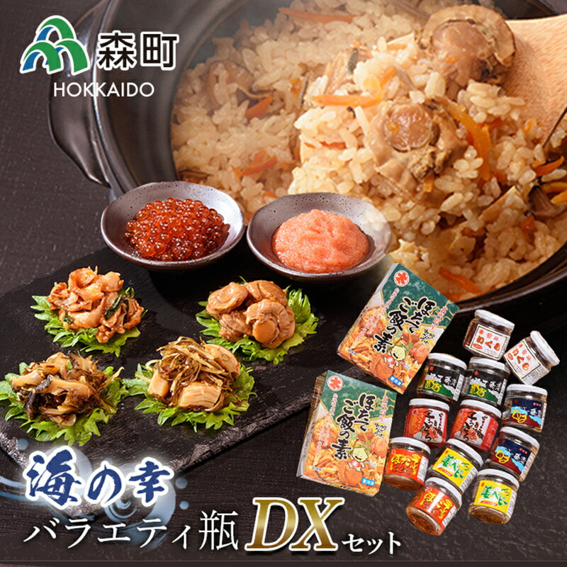 商品詳細 名称海の幸バラエティ瓶セットDX 商品説明(株)丸太水産こだわりの商品をセットでお得に楽しめます! (1)ピリ辛子っとろ 道の駅で大人気!地元噴火湾の新鮮なたらこをほぐし明太子風味に仕上げました。 (2)姜ベビー 噴火湾で取れたベビーホタテを生姜醤油味に仕上げました。ご飯のお供やおつまみに。 (3)ほたて磯漬 噴火湾のボイルほたてを使用した松前漬け風味。お子様でも食べられる甘めの味付け。 (4)つぶ磯漬 北海道のつぶをふんだんに使用し、ピリ辛松前漬け風味に仕上げました。お酒のお供に是非。 (5)ほたてキムチ 歯ごたえ抜群のほたてのミミをキムチ風味にしました。ご飯にもお酒にもあいます。 (6)ほたてご飯の素 とにかくほたてを贅沢に使用し、ほたてメーカーだからこそ作れるほたてにこだわった炊き込みご飯です。 (7)いくら醤油漬 北海道産の新鮮ないくらをオリジナルの醤油ダ... |