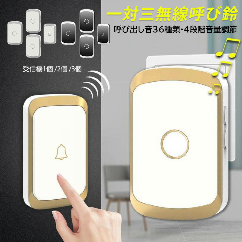 【商品詳細】 【注意】 ※該当商品には技適マークが貼付されていません。 ※日本国内で使用すると電波法違反になるおそれがあります。 カラー:ブラック、ゴールド、シルバー サイズ:受信機(90*56*20mm)、送信機(77*46*20mm) 防水レベル:送信機防水レベルIP44 音量:呼び出し音36種類 4段階音量調節 受信機電圧:110-220V 送信機電池:12V23A(電池付き、長い使用寿命1-3年) タイプ:受信機*2送信機*1 / 受信機*3送信機*1 通信距離速度は建物の構造や障害物、使用環境などによって、変わります 【商品機能】 ワイヤレス&音楽選択こちらの呼び出しチャイムは障害のない場所で、ワイヤレス通信が最大300メートルの長距離まで届けます。 広い家でも安心です呼出音楽は36メロディーを選択可能です。 受信音量は4段階ありますので、お好みに合わせて選択できます。 混信なし... |