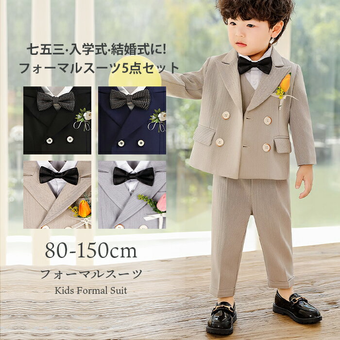 商品詳細 素材 70%ポリエステル 26%ビスコースレーヨン 4%スパンデックス カラー展開 【ベージュ】【グレー】【ネイビー】【ブラック】 サイズ展開 【80cm】【90cm】【100cm】【110cm】【120cm】【130cm】【140cm】【150cm】 セット内容 子供 スーツ 5点セットジャケット+ズボン+ベスト+蝶ネクタイ+ブローチ 生産国 中国 商品メリット お買い得な子供 スーツです。 男の子の可愛らしさをしっかり詰め込んで、色んなフォーマルシーンで活躍できます。 お子様の晴れ舞台に大活躍間違いなし、おしゃれなスタイリングが一着で完成するセットアップ。 大人顔負けのスタイリッシュなデザインでばっちり可愛い。 目を引きつけるデザインが、外出時注目を集めること間違いなし。 セットアップになっているので、清楚な雰囲気の褒められスーツ。 首元のスリルや襟ぐりのノッチドラペルがお顔... |