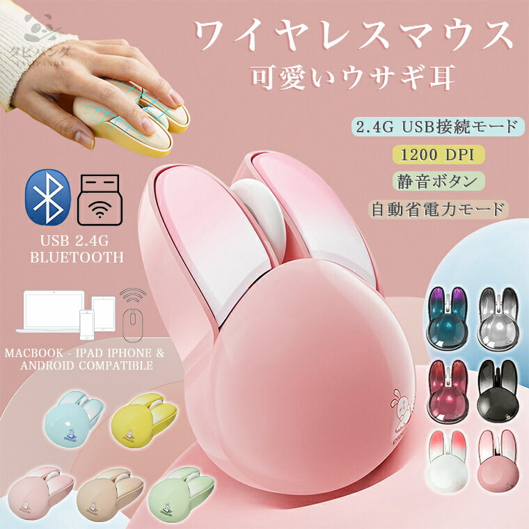 商品名ワイヤレスマウス 女性 2.4GHz Bluetooth 無線マウス 可愛いウサギ 兎耳 1200DPI USBワイヤレスマウス 人間工学 高感度 高精度 静音 無線 小型マウス 省エネルギー 軽量 かわいい おしゃれ 女性 大人 可愛い 就職 転職 入学 祝い 小型 小さめ 使いやすい プレゼント ギフト Bluetoothマウス レシーバー 2.4GHz 無線 ワイヤレスマウス 動物デザイン スリム コンパクト PC ノートPC対応 新学期 マカロンカラー デスク周り PCデスク PCマウス 無線 華やか パソコン メーカー・ブランド タピパンダ生活館 仕様 接続モード:2.4GHzワイヤレス 材质:ABSプラスチック、インタフェース:USB 2.0 伝送距離:10メートル以内、追跡タイプ:光学式 製品サイズ:約94*62*36mm、重量:約60g D... |