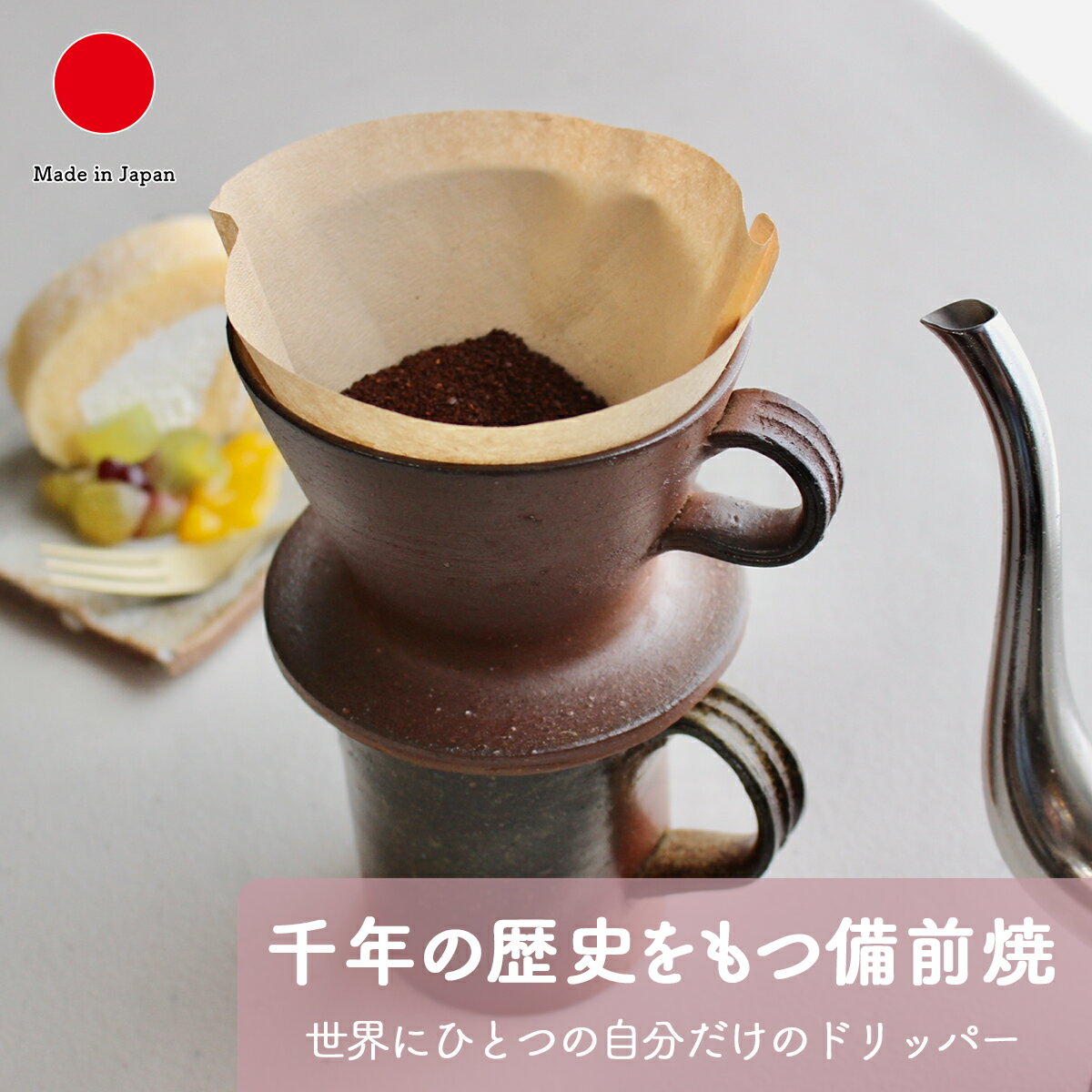 ギフト対応 - カフェハット Coffe hat - 佐賀県嬉野市で400年以上前から作り続けられている備前吉田焼。そんな伝統工芸の町に誕生した、新しい紙を使わないコーヒーフィルター 紙を使わないセラミックコーヒーフィルターです。 多孔質性セラミックの持つ遠赤外線効果とミクロの穴が水のカルキ臭や不純物を取り除き、まろやかで飲みやすいコーヒーが楽しめます。 また、浄水器の代わりにもご使用いただけます。 コースターの裏面にはマグカップとフィルターが安定するように溝を作り、ずれ落ちないように工夫しています。 セラミックフィルターは多孔質性セラミックという特殊な土を使用しているため通常の磁器のように薄く作ることが難しいのですが、そのフィルターを最大限に薄くし、そうすることで抽出するスピードをペーパーフィルターに近づけました。 また、通常のドリッパーはカップに乗せると、珈琲を淹れている最中に今どのく... |