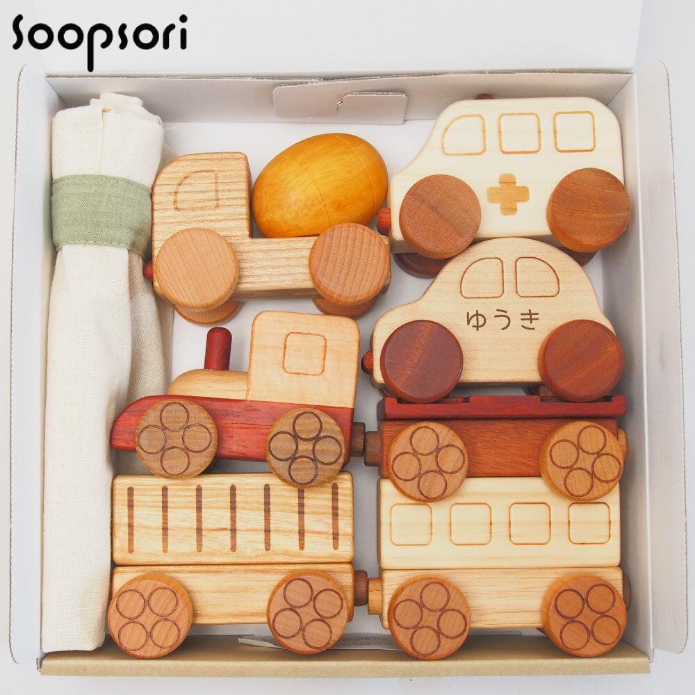 !ご注意!必ずご確認ください 木材は噛み続けると破損の原因となり危険です。スプソリの木のおもちゃは舐めても安心な無塗装ですが、何でも口に入れてしまう時期の赤ちゃんに長時間与えることはおやめください。 歯固めなど0歳向けの噛むことを前提としたおもちゃ以外は大人の目の元でお使いください。 内容機関車、客車、貨物車、トレイラー、乗用車各1台 ミキサー車、救急車各1台 収納バッグ ※客車、貨物車、トレイラー上部は車から外れます。素材木材、磁石(内蔵)、ゴム(ミキサー車)対象年齢の目安1歳半〜重さ約1kg(パッケージ含む)製造ベトナム ・木材は世界各国から輸入 ・舐めても安心EN71クリア亜麻仁油仕上げ 注意事項《磁石入り製品です》 ・おもちゃの故障がないかこまめに点検を行なってください。 ・磁石は一つの穴に一つ含まれております。 ・万が一磁石が露出した場合、磁石を回収し使用を中止してください。 ・... |